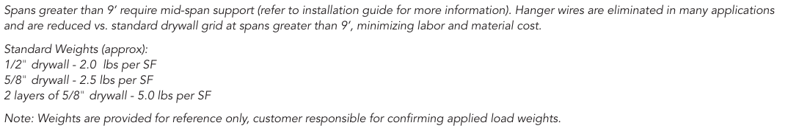 - This drywall grid ceiling system either reduces or eliminates the need for hanger wires at spans less than 9ft